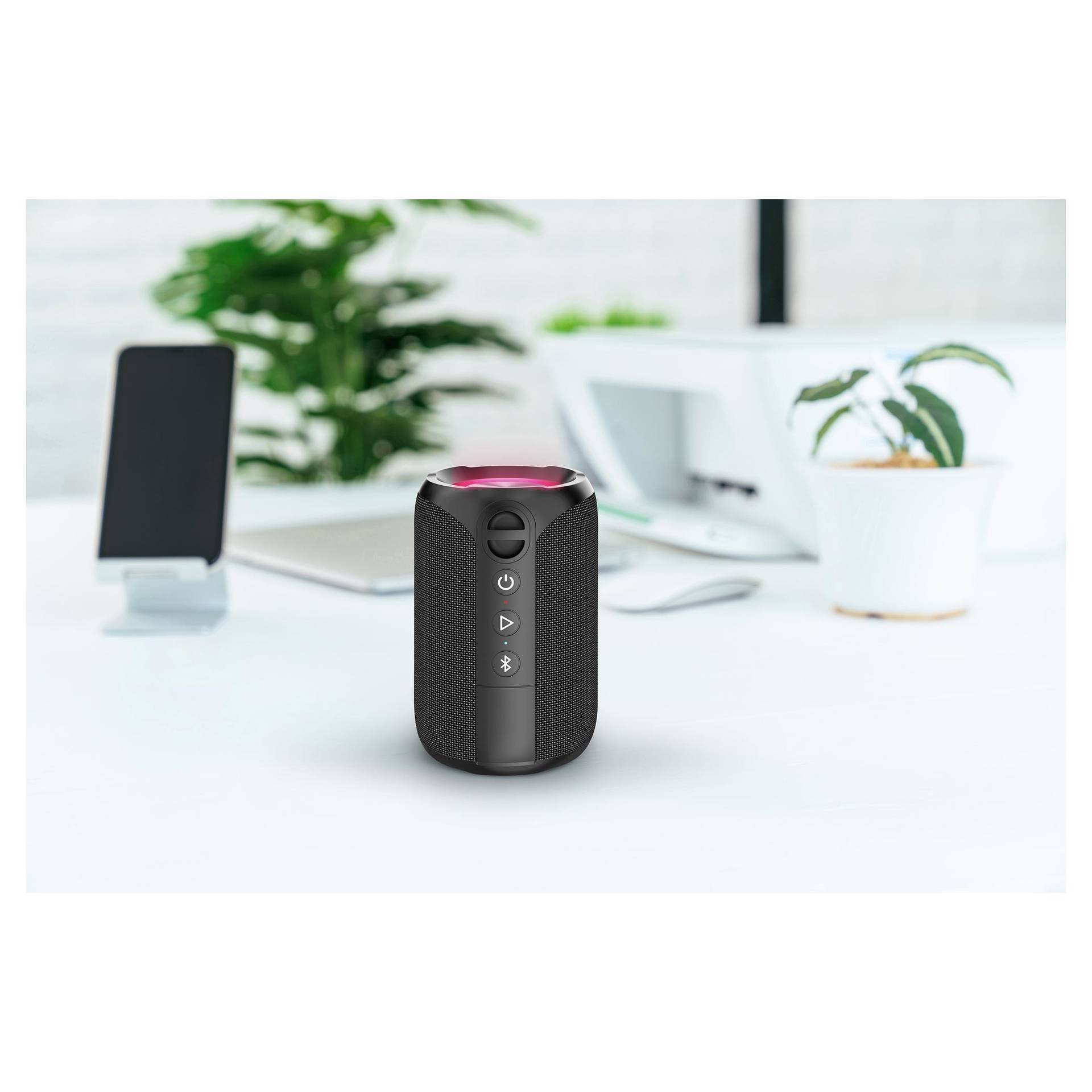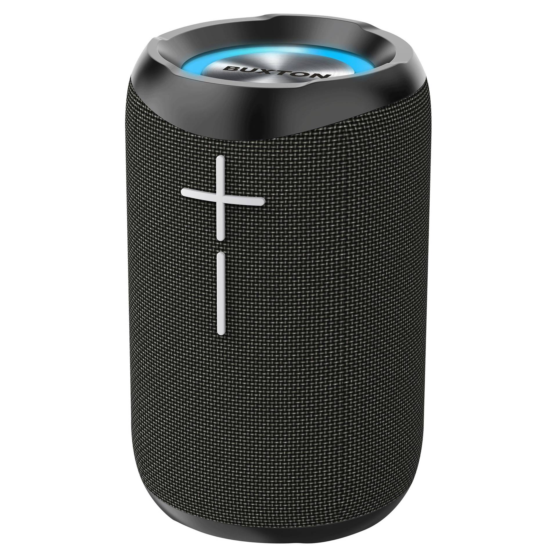 On top of that, the Buxton BBS 4400 is perfectly waterproof. What do we mean by that? The speaker is IPX7 rated, so even if you submerge the speaker one metre below water level for half an hour – it won't even notice and keeps playing! You won't find a better partner for rainy weather. Plus, the speaker is sleek – dressed in premium fabric, with lighting effects, an integrated microphone, AUX input and hands-free function! And how light it is! It weighs only 313 grams!