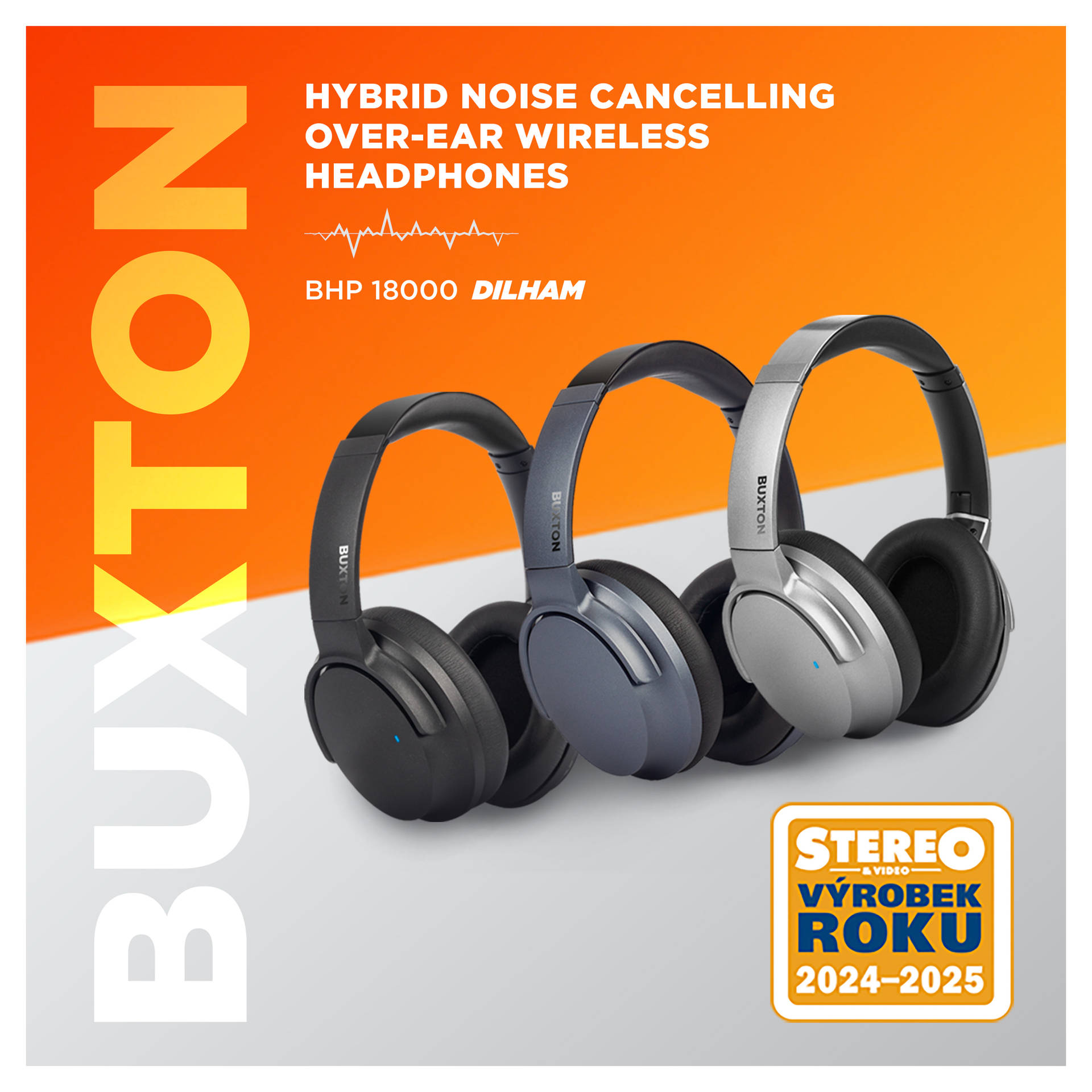 The BUXTON BHP 18000 DILHAM wireless headphones provide you with studio-quality music listening thanks to the advanced Hybrid ANC feature for active ambient noise cancellation up to 30 dB. Switch between music or your favourite podcast, as well as adjust the volume, easily with the 4 multi-function buttons. No need to take your phone out of your pocket. Comfortable wearing of the wireless headphones is ensured by the memory foam and protein leather ear pads. They are soft and won't press, so they are ideal for everyday wear around town, during sports, but also on the go.
