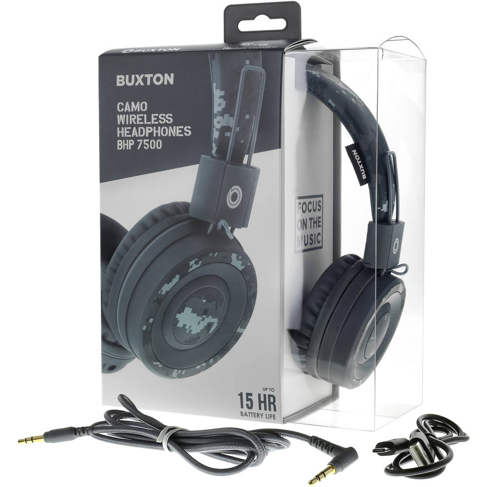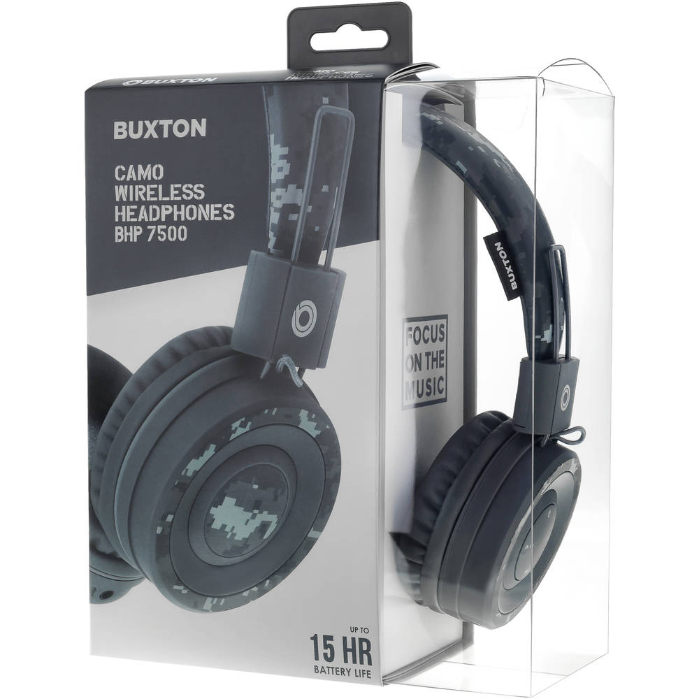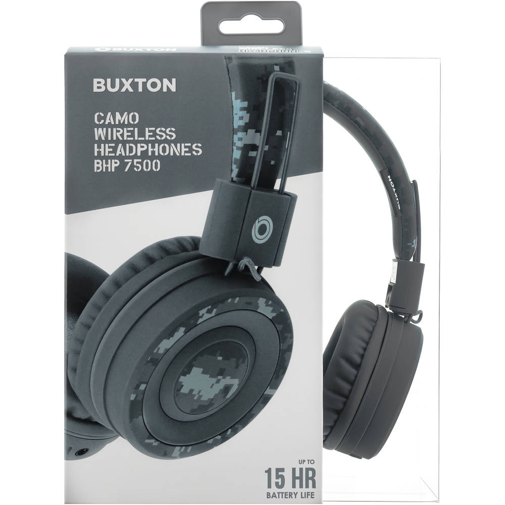 Wireless headphones with great sound and fresh colour combinations to catch attention! BUXTON BHP 7500 CAMO headphones will enhance your personality! Buxton 40 mm premium transducers provide a balanced reproduction of bass and treble for up to 15 hours with a single charging. Easy to carry folding design. The package includes a charging micro-USB cable and an audio 3.5mm jack/phone jack for endless music enjoyment should the headphones run out of their juice.