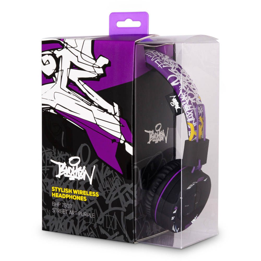 Wireless headphones with great sound and fresh colour combinations to catch attention! Buxton 40 mm premium transducers provide a balanced reproduction of bass and treble for up to 15 hours with a single charging. Easy to carry folding design. The package includes a charging micro-USB cable and an audio 3.5mm jack/phone jack for endless music enjoyment should the headphones run out of their juice.