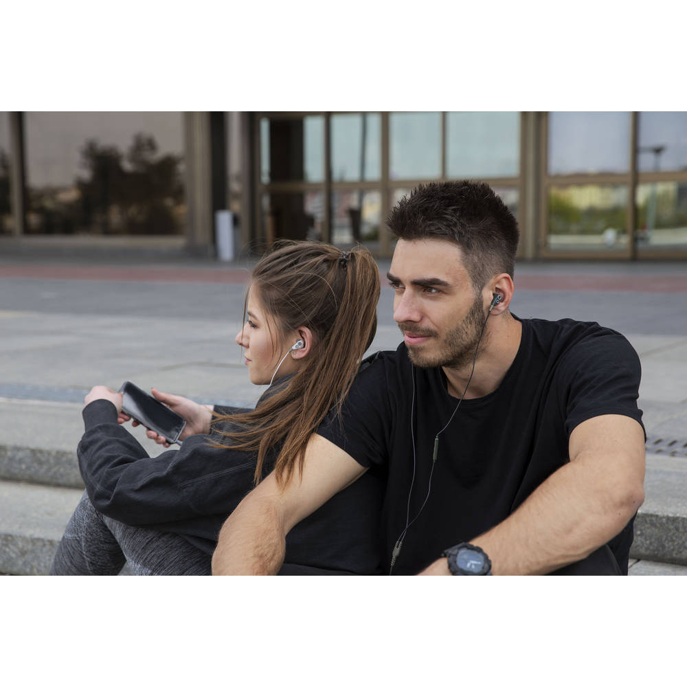 Exclusive metal earphones equipped with big acoustic convertors for the perfect listening. You will also appreciate the tuned designed and user comfort. The earphones are offered in two colour variations: Black and Silver.